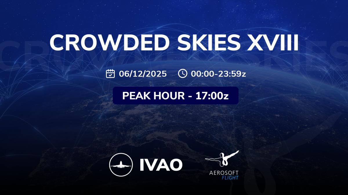 Crowded Skies XVIII El próximo 6 de diciembre de 2025, volamos juntos en el evento más esperado de IVAO, Crowded Skies XVIII. Prepárate para surcar los cielos desde Madrid (LEMD)